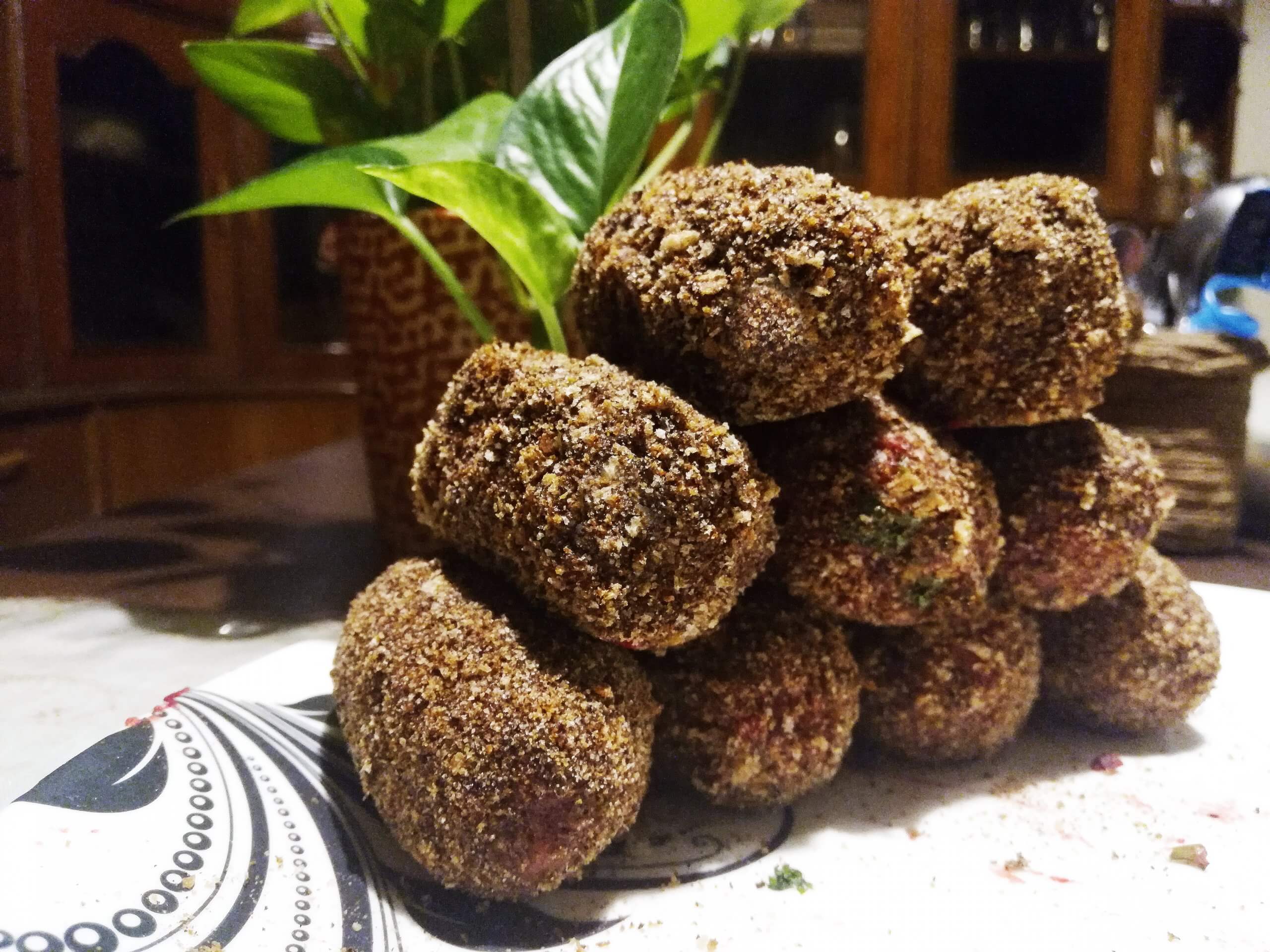 - Make medium-sized balls or oval shapes with the mixture. Take a bread slice and dip it in cold water. After squeezing out the water from the slice, wrap it all around the mixture ball.